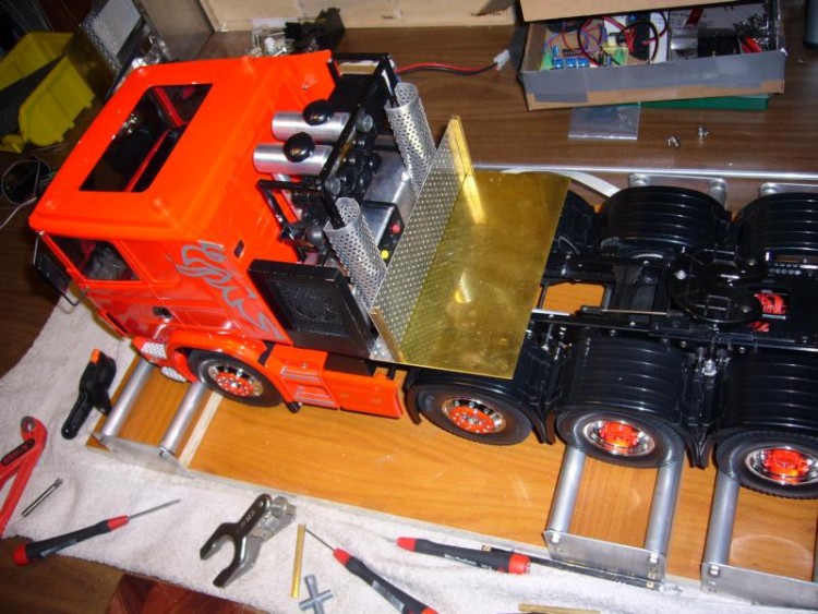 Der Schutz für die 2 Auspuffrohre, so wie der Beginn der Kiste, die später für den Akku benutzt wird.